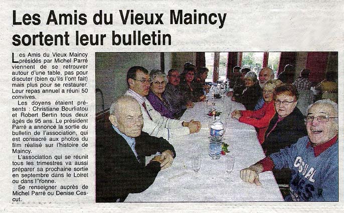 “ Les Amis du Vieux Maincy sortent leur bulletin ” (La République de S.-et-M. du 14 février 2011)
