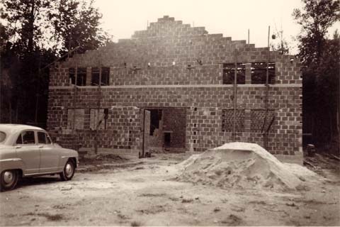 Les constructeurs posent devant la salle presque terminée avec un matériel qui ferait le bonheur des collectionneurs...